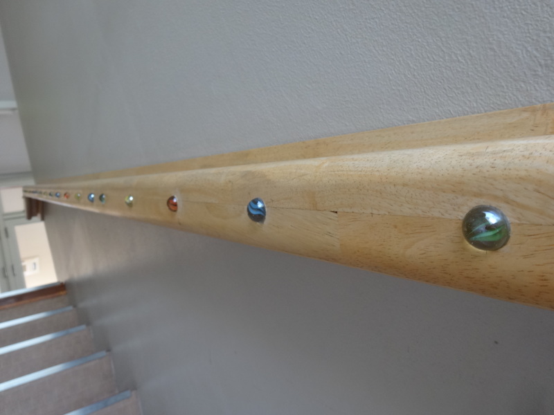 幼稚園の階段にある色とりどりのビー玉が、