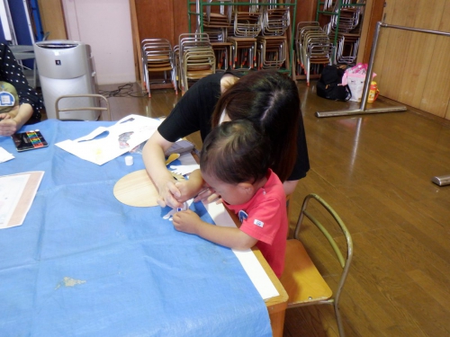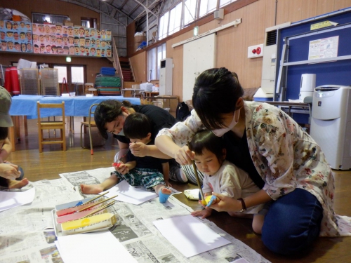 7月 親子教室 2021.07.19 親子教室 7月の親子教室は、 「手形・足型アートでうちわを作ろう」でした! まずはどんなアートにするかを決め、 絵の具でお母さんと一緒に手形・足型をぺたっ 絵の具が乾くまでは、幼稚園の園庭で自由あそび! その後シールを貼ったり、お絵かきしたり・・・ オリジナルのうちわが完成☆ お子さんの成長が残せる手形・足型アート。 是非お家でもやってみてくださいね! 次回の親子教室は10月です。 HPでお知らせしますので、沢山のご参加お待ちしております! 一覧を見る