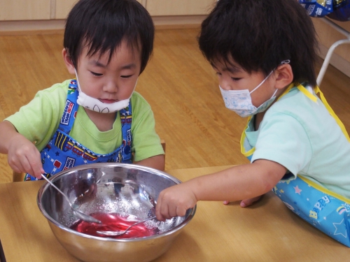 大人がするとあっという間に終わってしまうゼリー作りも、