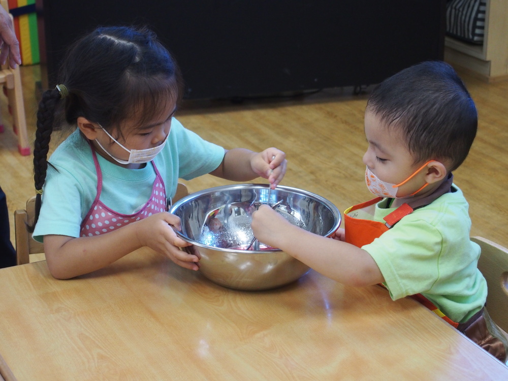 お友だちと協力しながらのクッキング。