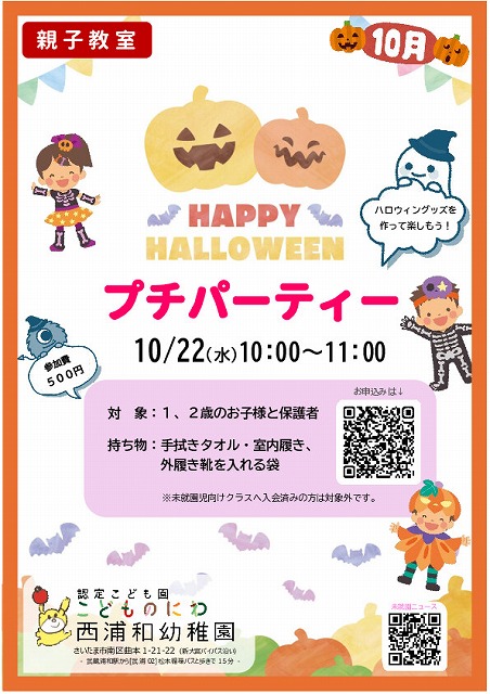 10月親子教室お知らせ~ハロウィンのプチパーティー~