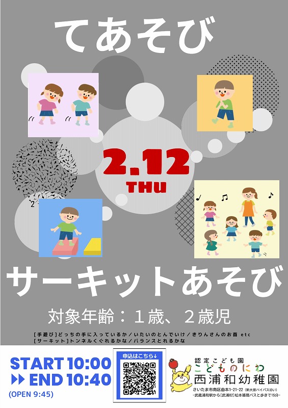 2月親子教室[てあそび&サーキットあそび]のお知らせ