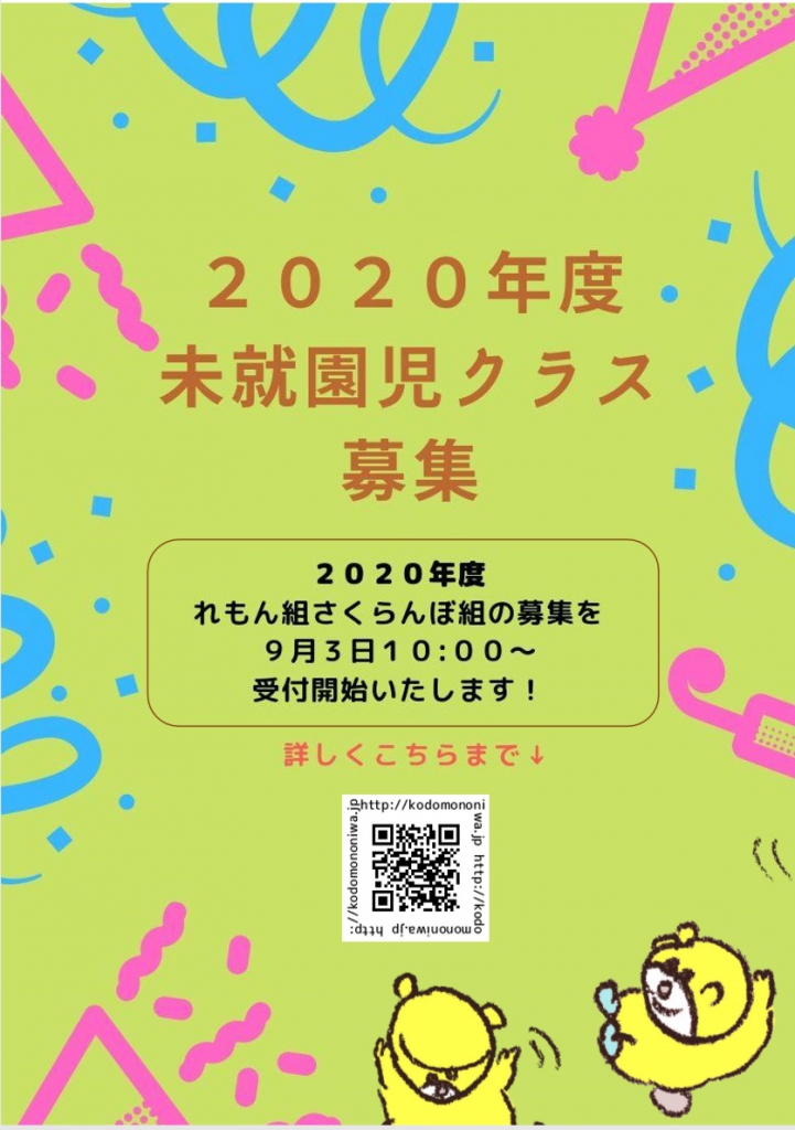 2020年度、さくらんぼ組 れもん組の募集受付を開始致しました。