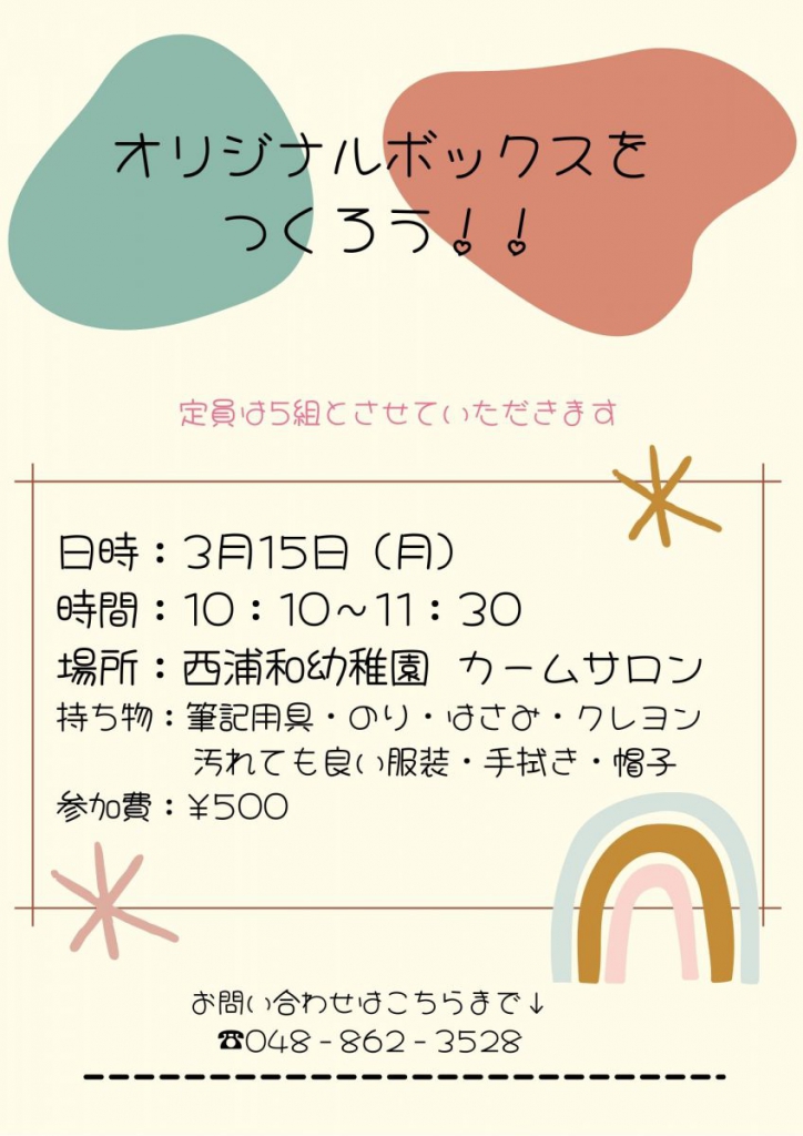 西浦和幼稚園では、おもちゃ等の消毒をはじめとし、こまめの換気、空気清浄機・殺菌噴霧器の設置など、なるべく万全な対策を考えて対応しております!