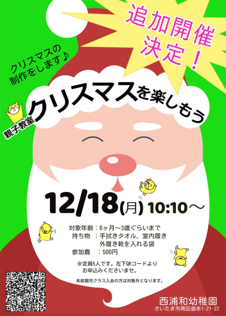 【追加開催】12月親子教室のお知らせ