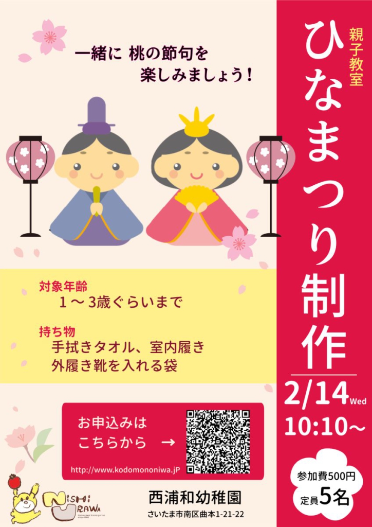 【持ち物】 手拭きタオル、室内履き、外履き靴を入れる袋