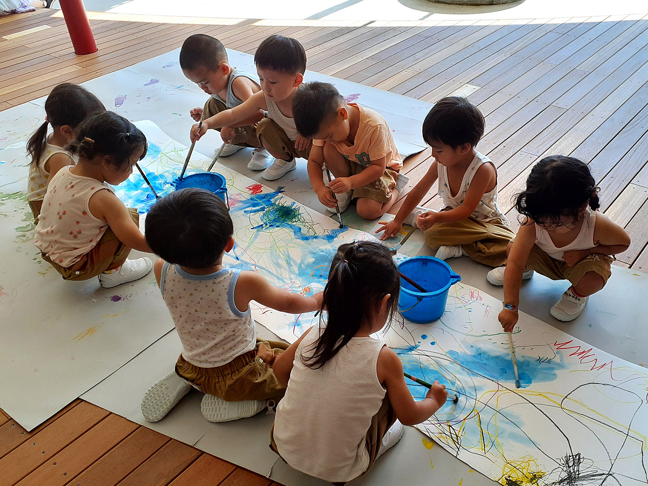 はじめての体験がたくさんの0歳児、1歳児、2歳児。初めての体験が楽しいとこれから出会うたくさんの新しいことにも、ワクワクすることができます。楽しいのはもちろん、体験を通して感じ考えたことを表現することも大切にしています。園の環境の中でいっぱいの刺激を受けて、集団生活の第一歩を過ごすことができます。